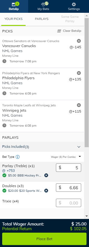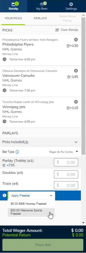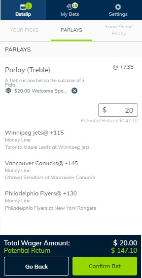 Betting on PlayNow no longer requires you to create parlay bets. You can choose to add a single Pick to your Betslip.