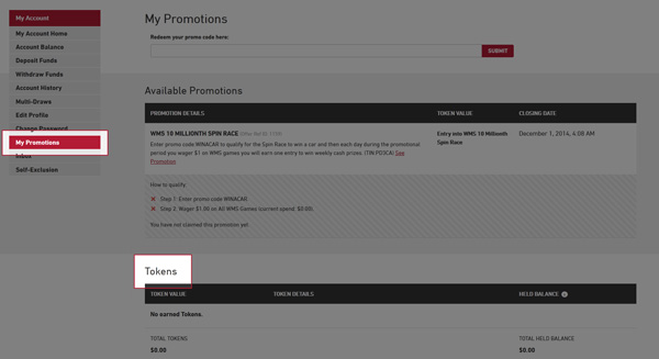 There are also specific promotions that are available to you through your 'My Promotions' page from time to time. You can check these promotions by logging into your account and then click on the 'My Account' link at the top right corner of the page. From here you should click on the 'My Promotions' link in the left navigation and look for the section called 'Promotions Available to You'.
